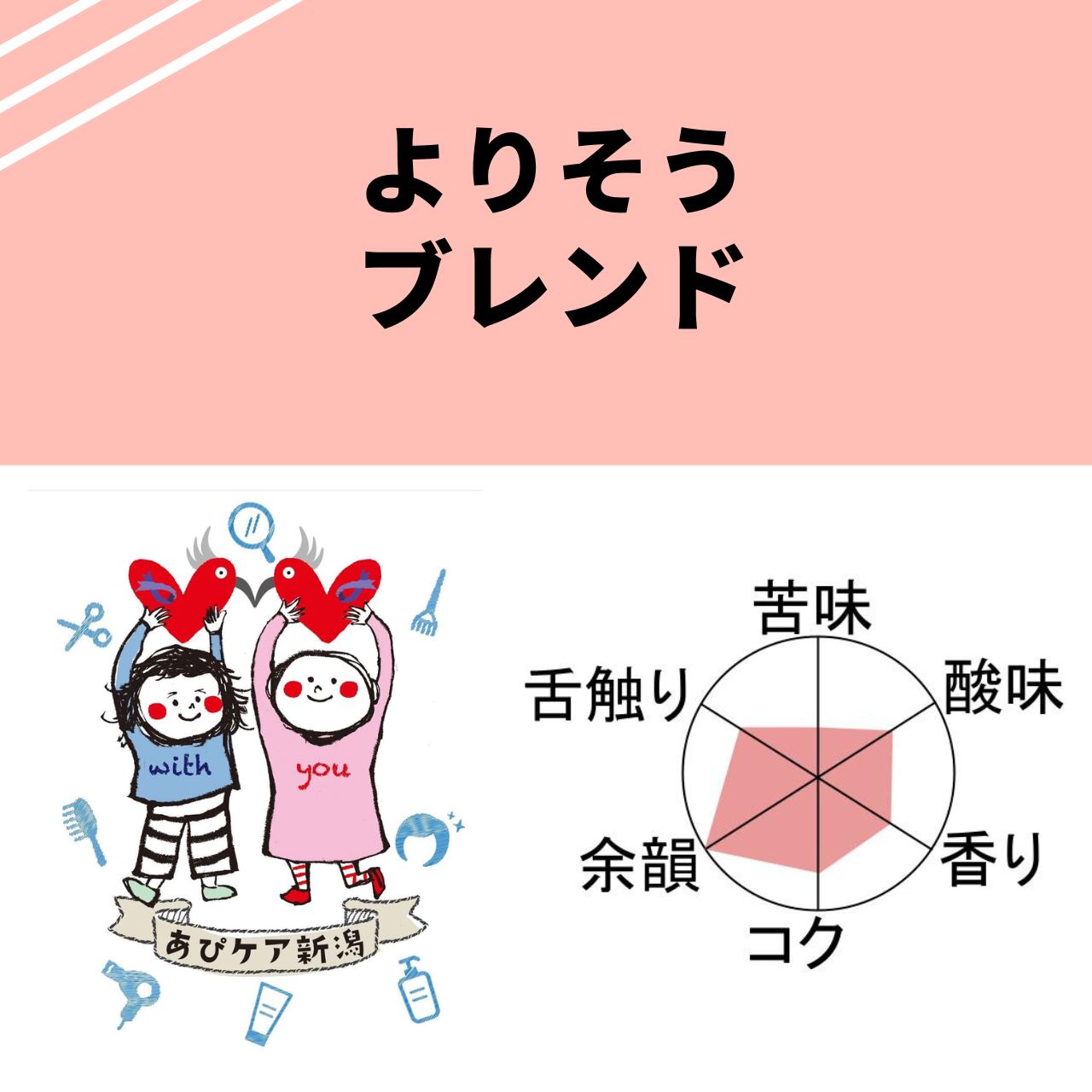 味のイメージは「やさしさ」です。優しい甘さと酸味で、包みこまれるような安心感のあるブレンドです。