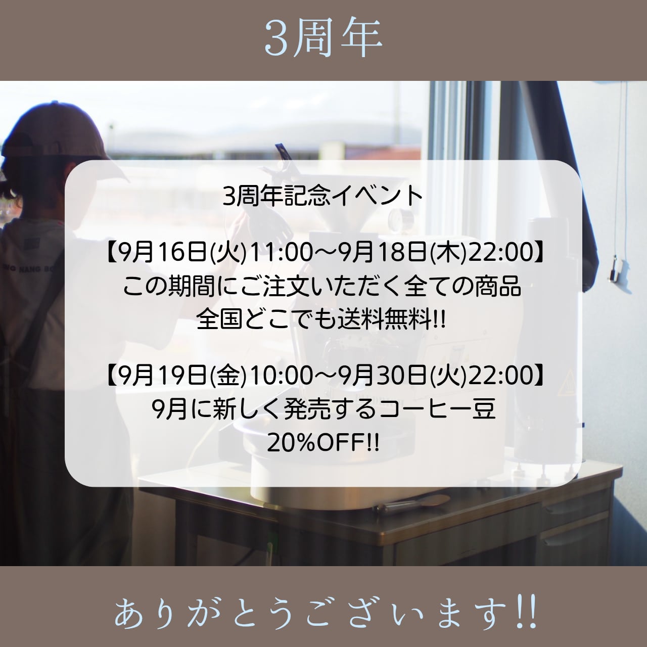 焙煎工房移設拡大のお知らせ