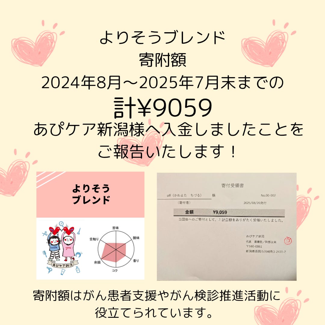 よりそうブレンドの寄附額入金のご報告
